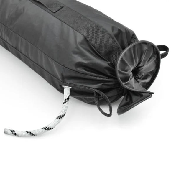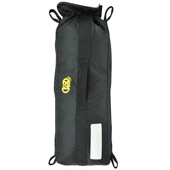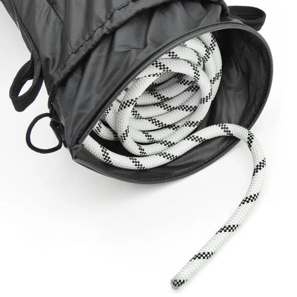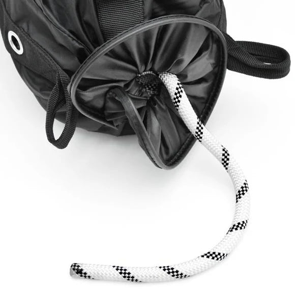 Ultra-light rope bag. It can be used alone or as an accessory bag to fit into a bigger backpack. It can hold up to 60m of 11mm diameter rope. Equipped with handy loops for tying-in the rope ends. The upper opening features a rigid cable that holds it in the open position, making it easy to feed rope in and out of the bag. Writeable label for quick owner identification.
